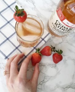 Nicole Thien de Uniquely Women a développé ce succulent cocktail de bourbon infusé de fraises et d’herbes qu’elle prépare avec le bourbon doublement médaillé d’or de Cedar Ridge :